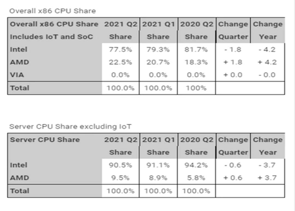 Tin mừng cho đội đỏ với thị phần CPU x86 chiếm được từ nhà Intel, đạt đến 22,5% trong Quý 2 / 2021. Theo Mercury Research, thị phần vi xử lý x86 của AMD gần đạt mức cao nhất mọi thời đại.