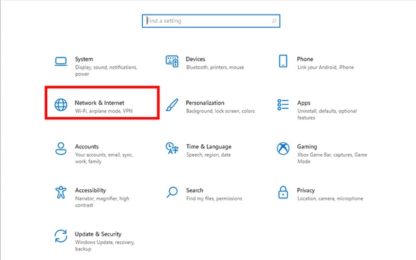 Bước 1: Nhấn tổ hợp phím Windows + I (hoặc vào Setting) => Chọn Network & Internet