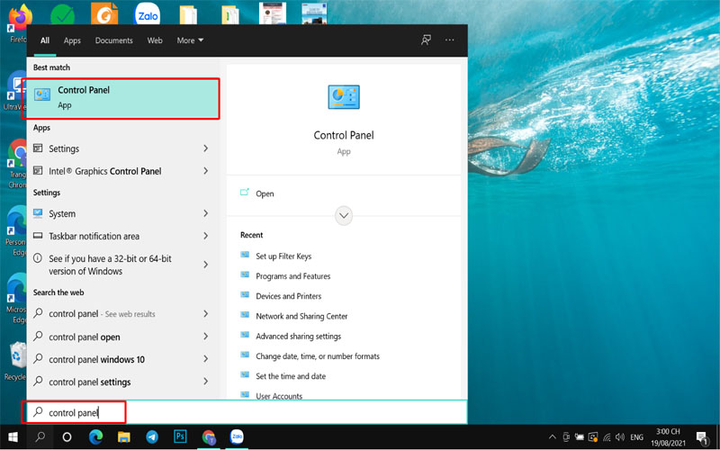 Bước 1: Mở Start Menu, nhập Control Panel => Enter.
