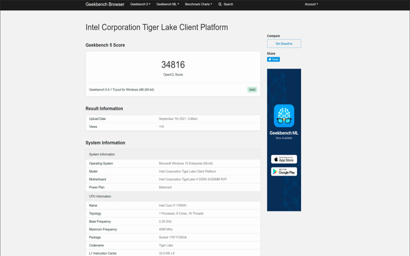 Những chiếc card đồ họa Intel Arc Alchemist xuất hiện cơ sở dữ liệu trong Geekbench 5 với CPU Core i7-11800H