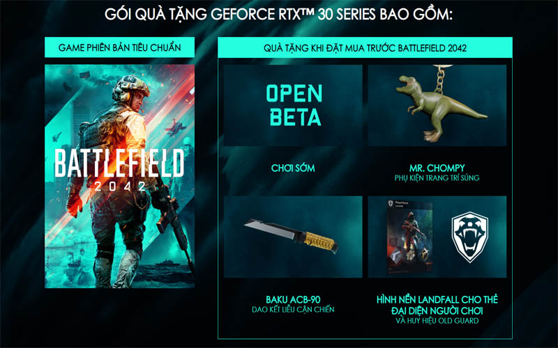 Trước khi hạn chót đổi game kết thúc, bạn hãy tải Battlefield 2042: Chương trình áp dụng khi PC hoặc máy tính xách tay MSI GeForce RTX 3090, 3080 Ti, 3080, 3070 Ti và 3070.