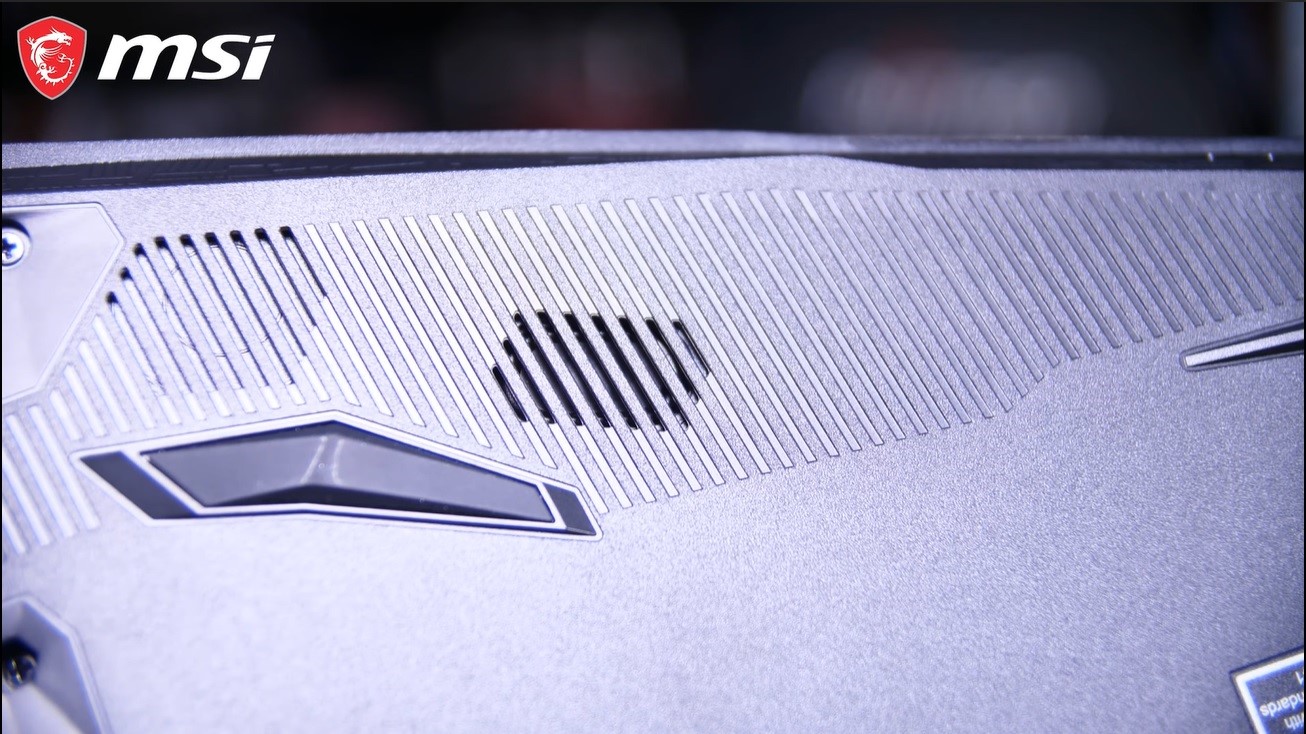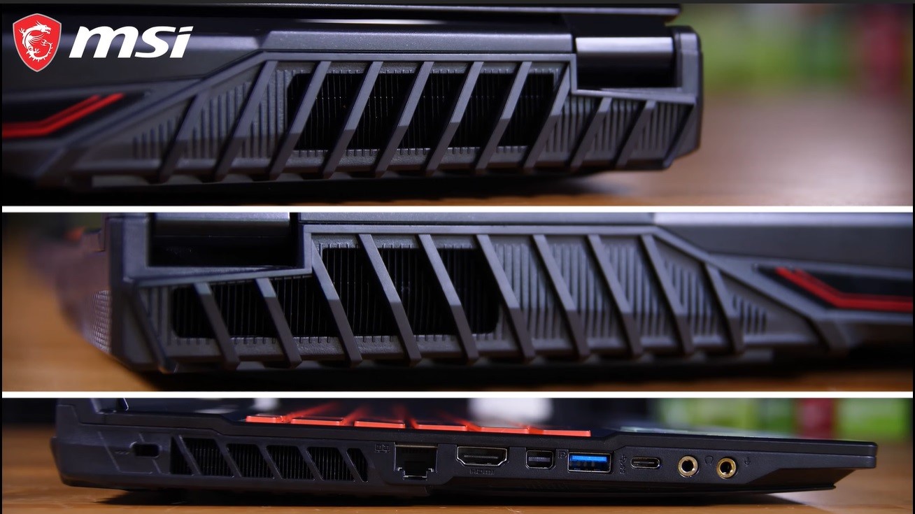 ✓ Là một mẫu máy chơi game, dĩ nhiên GL65 không thể thiếu đi thiết kế tản nhiệt vô cùng nam tính, mạnh mẽ. Các hốc tản nhiệt được làm nhô, với những đường cắt vát sắc sảo rất đặc trưng. Hệ thống tản nhiệt Cooler Boost 5 với hai chiếc quạt chất lượng Whirlwind Blade và 7 ống dẫn bằng đồng hoạt động bền bỉ, giúp máy chạy ổn định hơn và đảm bảo hiệu suất tối đa khi bật Cooler Boost.