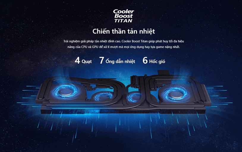 - Hệ thống tản nhiệt CoolerBoost Titan siêu khủng và xử lý nhiệt độ tốt hiện nay trên laptop.