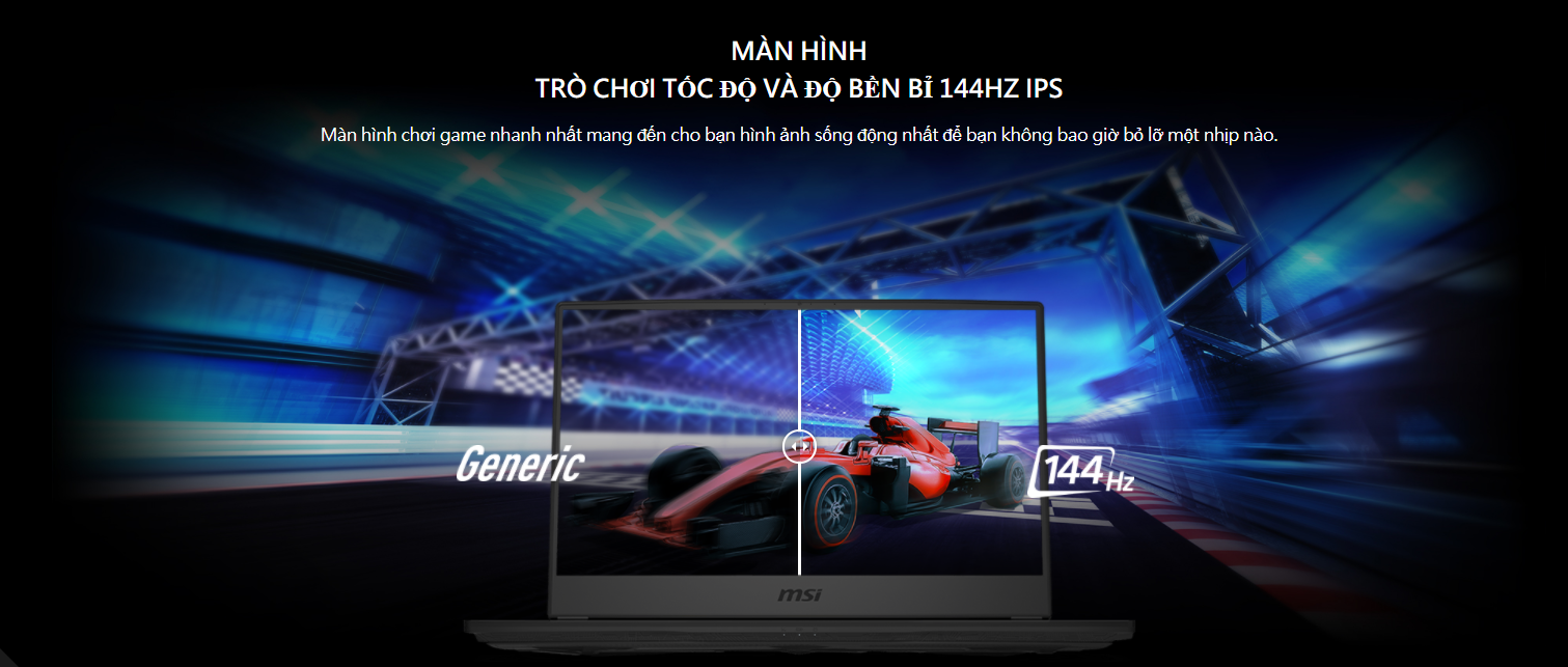 - Nếu muốn chơi những game tốc độ nhanh như đua xe thì không thể không chọn GL75 10SDR. Bởi máy trang bị màn hình FHD IPS (1920x1080) với 144HZ IPS để bạn không bỏ lỡ bất cứ một nhịp nào. Ngoài ra, màn hình của dòng laptop này là loại viền mỏng, chống chói, close to 100% sRGB giúp mang lại những hình ảnh sắc nét, sống động, chuẩn điện ảnh bất kể môi trường sử dụng nào, thậm chí là sử dụng ngoài trời.
