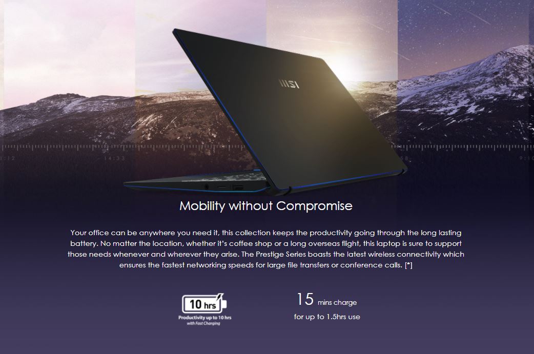 MSI nổi tiếng là dòng laptop gaming với thiết kế cá tính, mạnh mẽ và cấu hình khủng phục phụ cho giới game thủ, Tuy vậy, MSI vẫn thường xuyên cho ra mắt những dòng laptop dành cho giới văn phòng với tiêu chỉ gọn nhẹ, thanh lịch, hiệu năng mạnh và giá tầm trung. Một dòng máy văn phòng đặc trưng của MSI mà không thể không nhắc đến đó chính là MSI Prestige. Dòng mắt này được cho ra mắt chính là tiên phong trong công nghệ tiết kiệm điện của MSI. MSI Prestige 14 sở hữu những công nghệ tiên tiến nhất và sức mạnh vượt trội, đảm bảo sẽ đáp ứng được nhu cầu học tập, làm việc, sáng táo, live streamer, chơi game, giải trí...