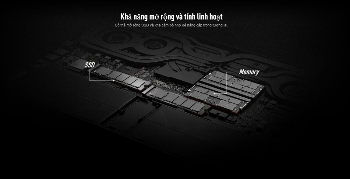 - Hãy tận hưởng tốc độ hệ thống và khả năng phản hồi nhanh nhờ RAM 32GB DDR4 3200MHz và ổ cứng SSD 2TB M.2 PCIe. Nhờ vào tiêu chuẩn mạnh mẽ của RAM lẫn SSD, MSI GS66 11UG sẽ đưa trải nghiệm chơi game của bạn lên một tầm cao mới. Không chỉ vậy, cả RAM và SSD đều có 2 slot để có thể mở rộng nâng cấp laptop của mình trong tương lai nếu muốn.