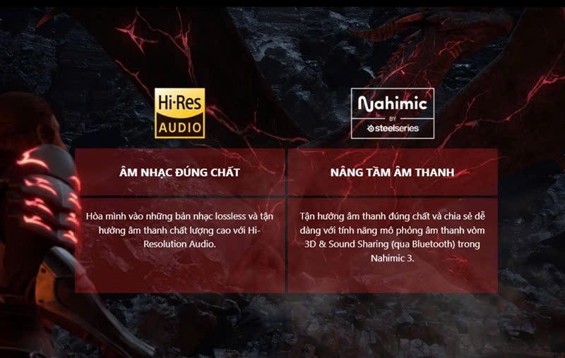- Đặc biệt, tính năng mô phỏng âm thanh vòm 3D trong phần mềm Nahimic 3 giúp tạo ra một không gian âm thanh sống động, cho phép người dùng dễ dàng cảm nhận từng chi tiết âm thanh từ mọi hướng. Điều này giúp người dùng đắm chìm trong không khí của trò chơi hoặc bộ phim yêu thích. Hơn nữa, tính năng Sound Sharing qua Bluetooth cho phép chia sẻ âm thanh với các thiết bị khác một cách dễ dàng, giúp bạn có thể thưởng thức âm nhạc cùng bạn bè mà không cần phải kết nối dây rườm rà.