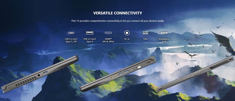 THIN 15 được thiết kế để đáp ứng mọi nhu cầu công việc và giải trí, mang đến sự tiện lợi tối đa với các cổng kết nối thông minh và linh hoạt.