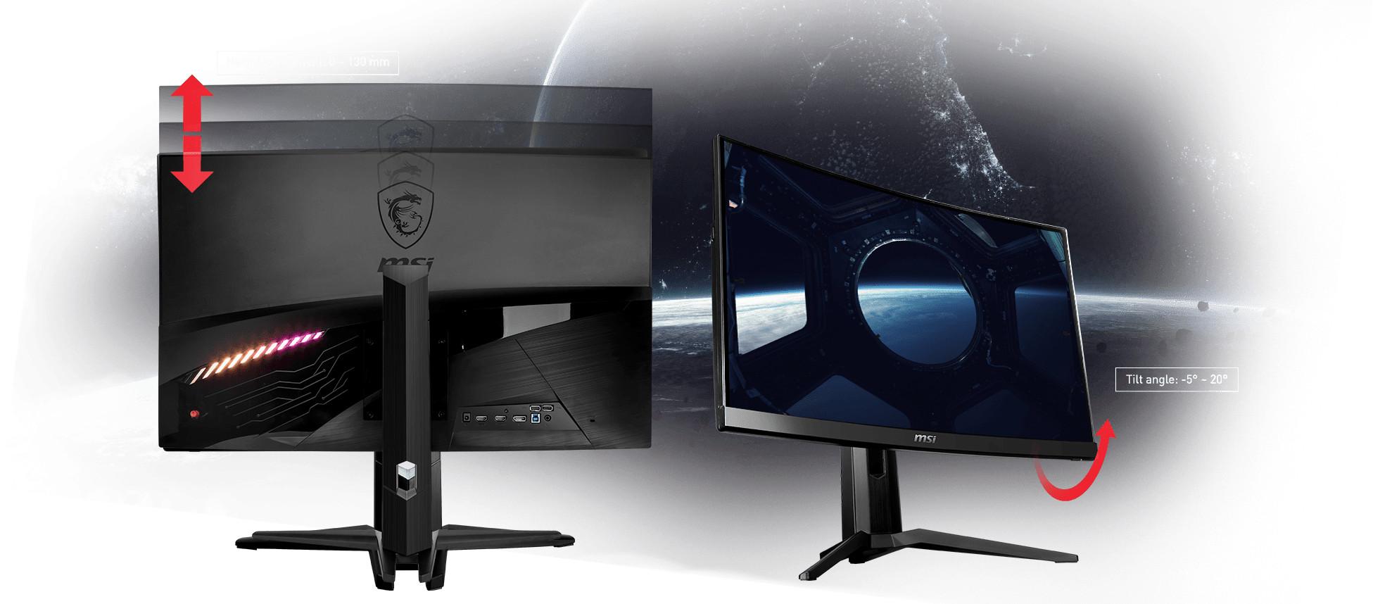 Màn hình chơi gameMSI sử dụng tấm nền cong có tỷ lệ cong 1800R, thoải mái và phù hợp với nhiềuứng dụng từ điện toán thông thường đến chơi game. Các tấm cong cũng giúp cho việcnhập vai vào trò chơi, khiến bạn cảm thấy kết nối nhiều hơn với toàn bộ trảinghiệm