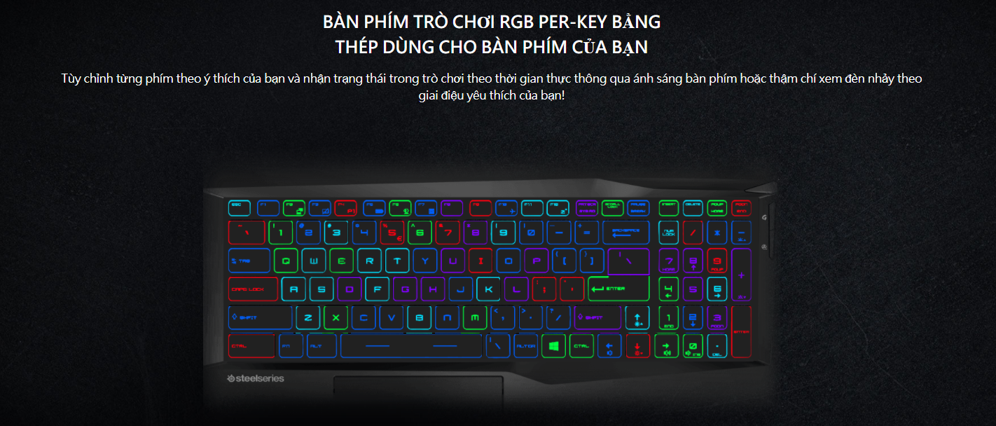 - Bàn phím Chiclet keyboard Steelseries with Per-key RGB led của GL75 10SDR mang đến sự tươi mới, sặc sỡ hơn so với những mẫu laptop gaming khác của nhà MSI, đồng thời làm bằng chất liệu thép nên sẽ rất bền bỉ. Dưới mỗi phím đều có đèn led, màu sắc được phân bổ random tạo nên sự vui mắt. Hãy sáng tạo và hòa mình với ánh sáng diệu kỳ từ MSI GL75.