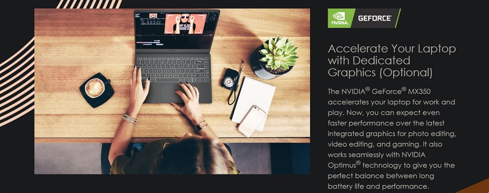 Tích hợp đồ họa NVIDIA® GeForce® MX350 tăng hiệu suất vượt bậc