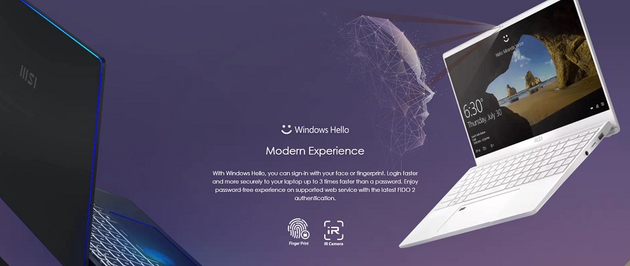 Với Windows Hello, bạn có thể đăng nhập bằng nhận dạng khuôn mặt hoặc vân tay để chắc chắn thông tin trong máy sẽ không bị đánh cắp. Công nghệ này giúp đăng nhập nhanh hơn và an toàn hơn vào laptop của bạn gấp 3 lần so với mật khẩu thường. Tận hưởng trải nghiệm không cần mật khẩu trên dịch vụ web được hỗ trợ với xác thực FIDO 2 mới nhất.