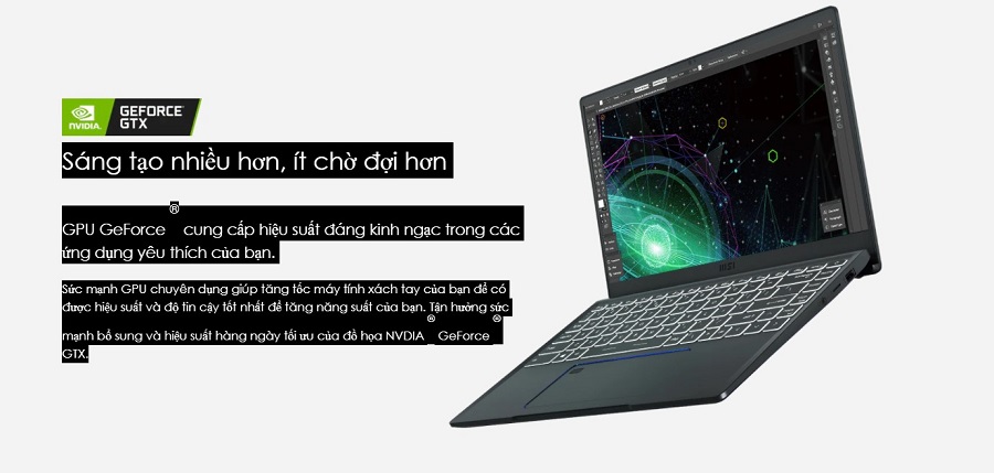 Cùng prestige 14 a11scx nâng tầm sức mạnh của với GenForce GTX 1650 4GB. Chúng được cung cấp bởi kiến trúc NVIDIA Ampere từng được đoạt rất nhiều giải thưởng về công nghệ, nó có lõi RT mới nhất, lõi Tensor và bộ xử lý đa luồng trực tuyến để kích hoạt nhận dạng màu sắc trong từng pixel hình ảnh. Sức mạnh GPU chuyên dụng giúp tăng tốc máy tính xách tay để có được hiệu suất và độ tin cậy tốt nhất để tăng năng suất. Tận hưởng sức mạnh bổ sung và hiệu suất hàng ngày tối ưu của đồ họa NVDIA ® GeForce ® GTX. Bên cạnh đó, máy còn có các tính năng AI tiên tiến bậc nhất như NVIDIA DLSS giúp phân biệt nhanh gương mặt của nhân vật khi chơi các loại game nhập vai.