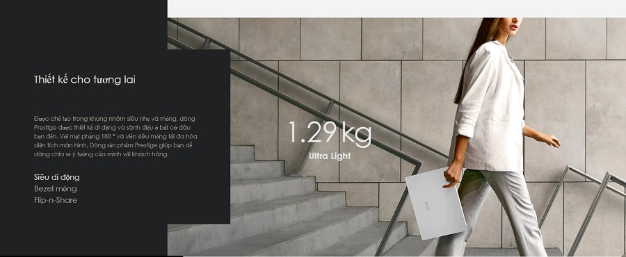 Máy được chế tác với các cạnh cắt kim cương và kết cấu phun sơn cát nhẵn bóng bằng chất liệu cao cấp. Dòng msi prestige a11scx được thiết kế mang hơi thở đầy nghệ thuật, độc đáo nhưng vẫn thanh lịch. Thiết kế máy mỏng nhẹ chỉ 16mm, dễ dàng mang theo di chuyển khắp nơi, vừa tiện lợi vừa sang trọng.
