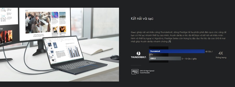 laptop msi prestige còn trang bị thêm đầu đọc thẻ tốc độ cao UHS-III mới nhất giúp truyền dữ liệu nhanh chóng.