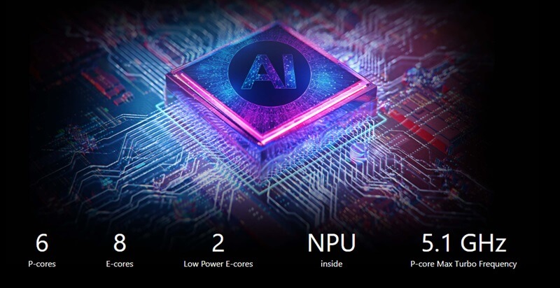 - CPU Intel Core Ultra 2024 & AI Boost (NPU) công nghệ mới cùng với GPU Nvidia GeForce RTX 40 series hiện nay vô cùng mạnh mẽ.
