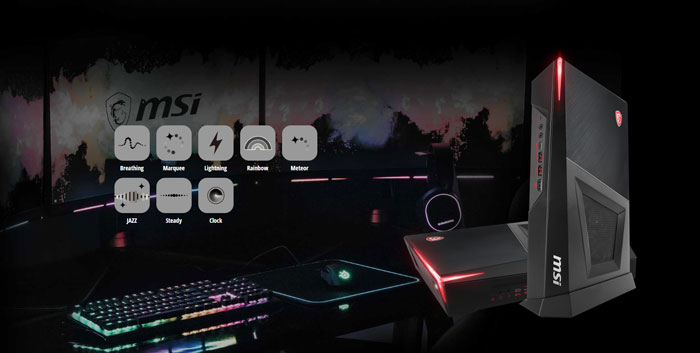 Toàn quyền tùy chỉnh PC MSI Trident 3 9SI-412XVN của bạn với ánh sáng huyền bí. Bạn có thể chọn bất kỳ màu nào trong bảng màu để phù hợp với thiết kế của hệ thống và các thiết bị khác, hoặc tự chọn hiệu ứng LED với nhiều cài đặt hiệu ứng màu sắc khác nhau.