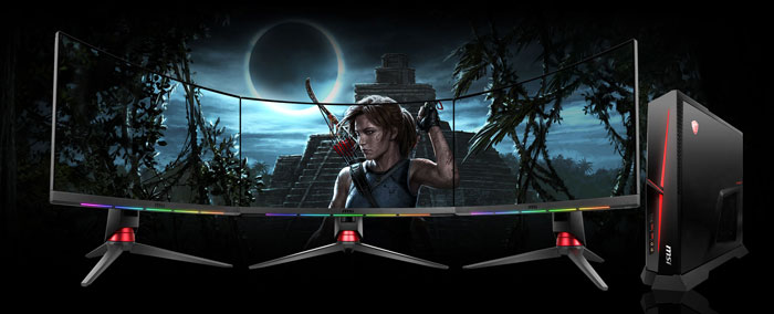 Sự kết hợp hoàn hảo giữa PC MSI Trident A với ba màn hình cong sẽ cung cấp trải nghiệm chơi game tuyệt vời và choáng ngợp nhất.