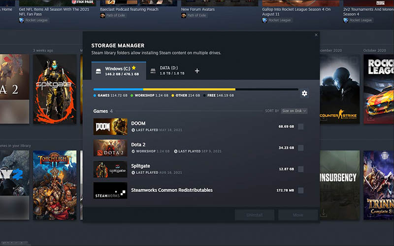 Steam đã cập nhật và nâng cấp Trang quản lý lưu trữ (Storage Management Page) một cách hoàn chỉnh giúp việc tạo và quản lý thư viện trò chơi của người dùng trở nên đơn giản hơn rất nhiều. Nếu bạn có SSD dung lượng nhỏ và HDD dung lượng lớn hơn thì bạn có thể sử dụng trang quản lý lưu trữ mới này để di chuyển các trò chơi qua lại giữa 2 ổ cứng này.